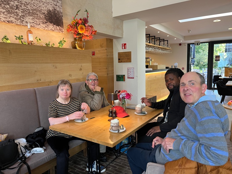 We hebben genoten van een mooi herfstlandschap tijdens onze ochtendwandeling in Hof ter Linden. Nadien hebben we iets gedronken in de brasserie.