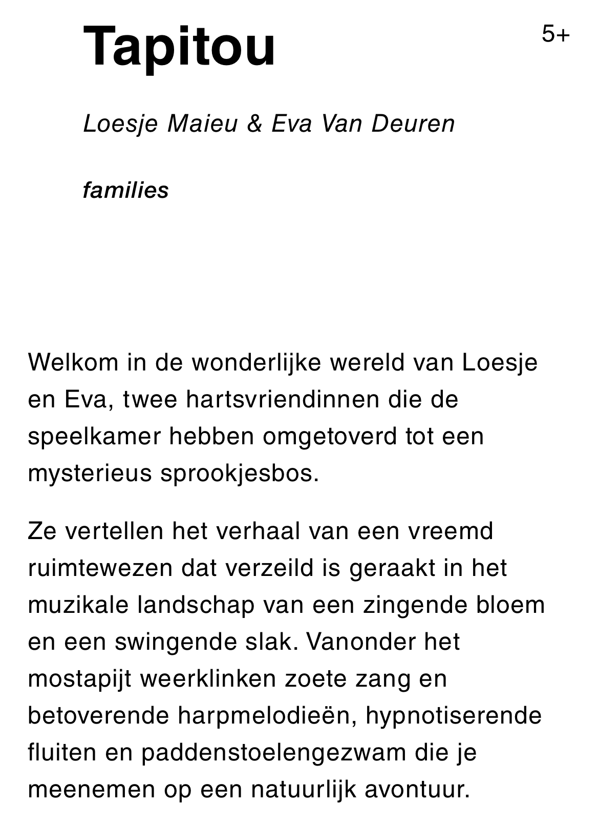 Ik vond het mooi. Tijdens de voorstelling zat ik naast mijn coach Katrin. Er werd veel muziek gespeeld met verschillende instrumenten. Volgende keer ga ik weer mee.